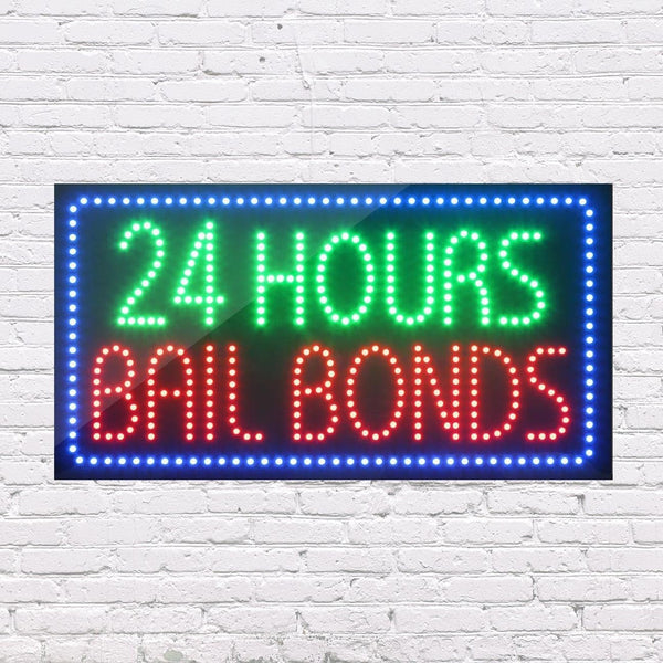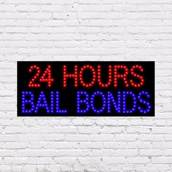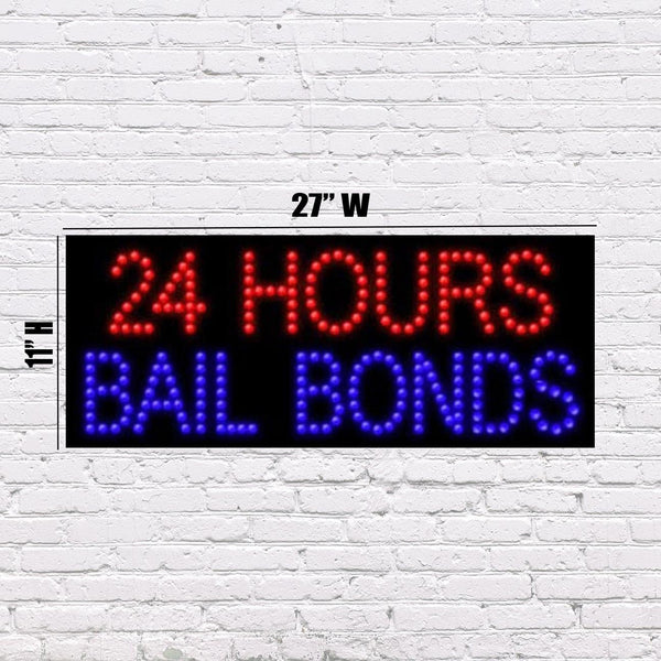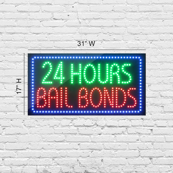 LED 24 Hours Bail Bonds Sign | Light Up Sign | 31"W x 17"H x 1"D