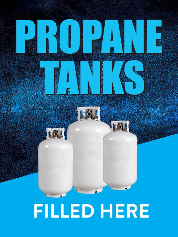 Propane Tanks Filled Here | Retail Window Display Sign | 18"W x 24"H