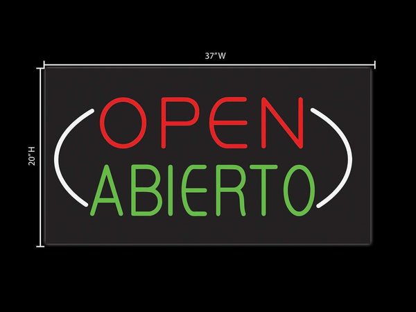 Open Abierto Neon Sign for Retail Displays | LED Flex Neon | 37"W x 20"H x 1"D