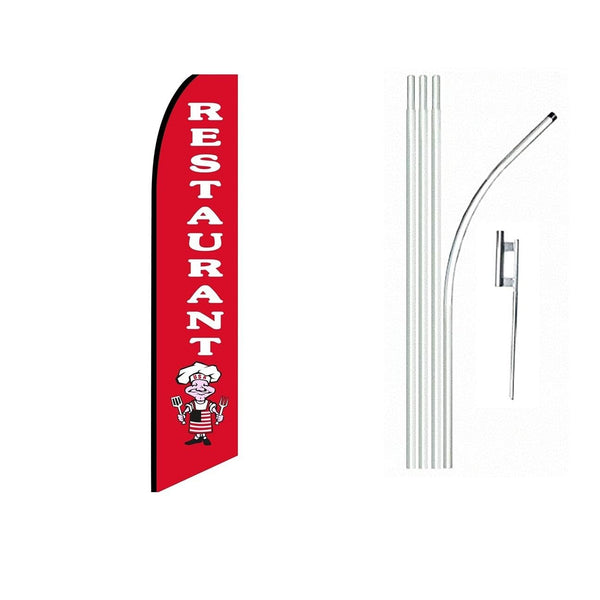 Restaurant Red Swooper Flutter Feather Flag | 3ft W x 11.5ft Tall