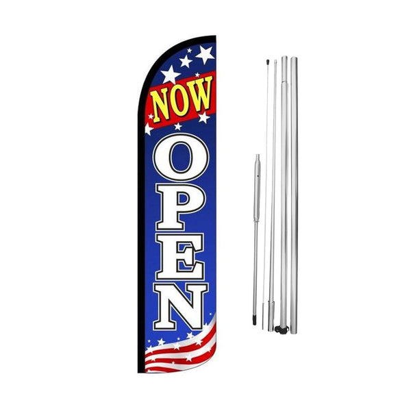 Now Open Swooper Flutter Feather Flag | 3ft W x 11.5ft Tall