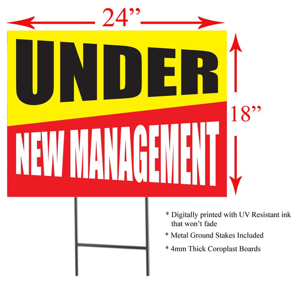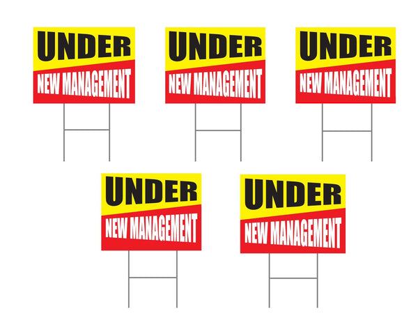 Under New Management | 5 Pack | Sidewalk Sign with Metal Stakes | 24"w x 18"h