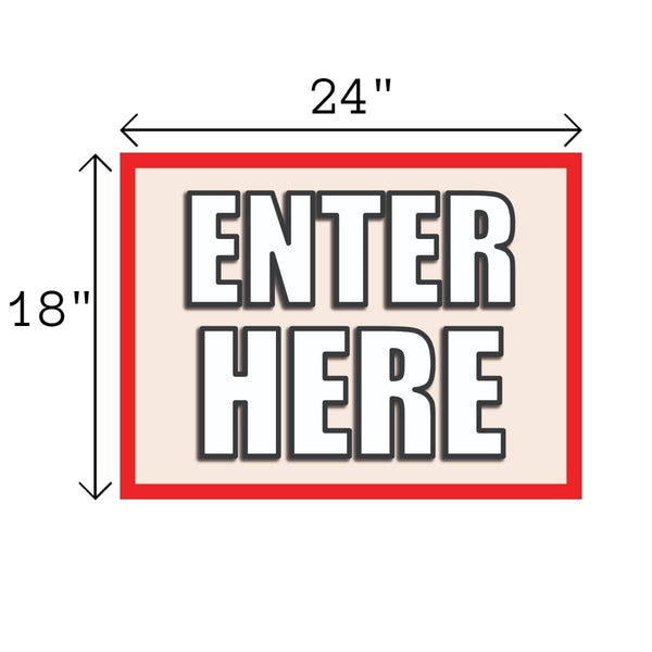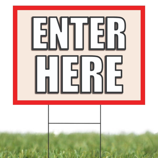 Enter Here | Sidewalk Yard Sign with Metal Stakes | 24"w x 18"h