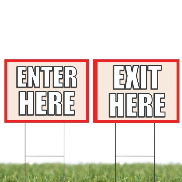 Enter Here and Exit Here | 2 Pack | Sidewalk Sign w/ Metal Stakes | 24"w x 18"h
