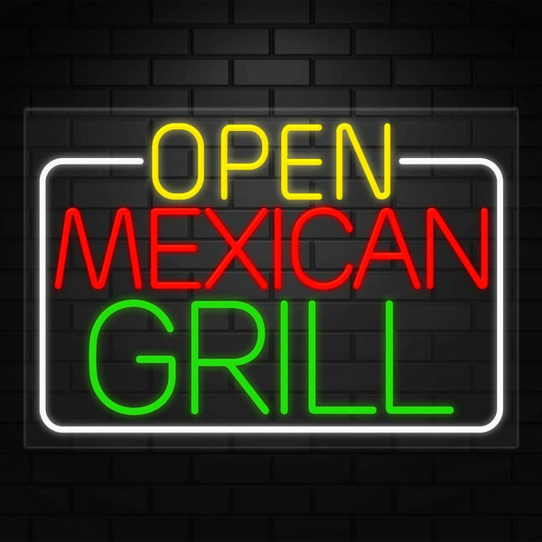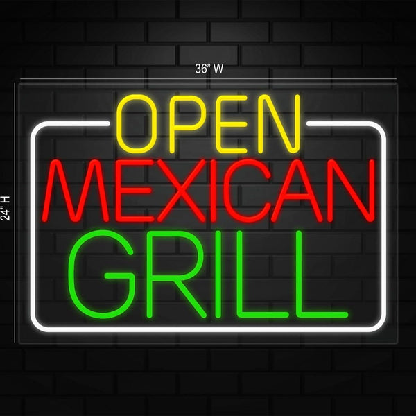 Open Mexican Grill Sign for Retail Displays | LED Flex Neon | 36"W x 24"H x 1"D