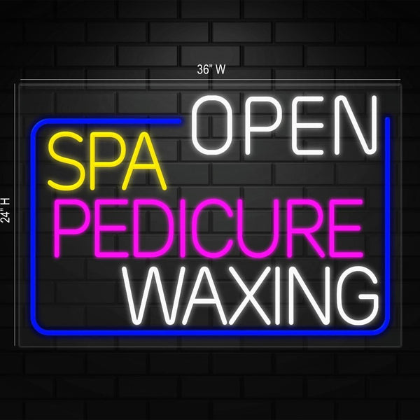 Open SPA Pedicure Waxing Sign for Displays | LED Flex Neon | 36"W x 24"H x 1"D