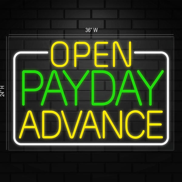 Open Payday Advance Sign for Retail Displays | LED Flex Neon | 36"W x 24"H x 1"D