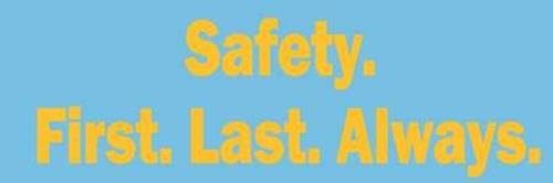 Safety. First. Last. Always. | Vinyl Banner w/ Grommets | 2’H x 6’W