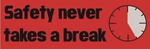 Safety Never Takes A Break | Vinyl Banner w/ Grommets | 2’H x 6’W