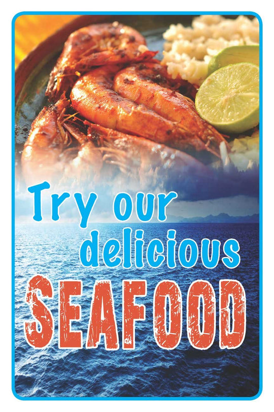 Try Our Delicious Seafood | Counter Sign | 12"W x 18"H
