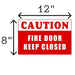 Caution Fire Door Keep Closed Retail Counter Informational Sign | 12"w x 8"h