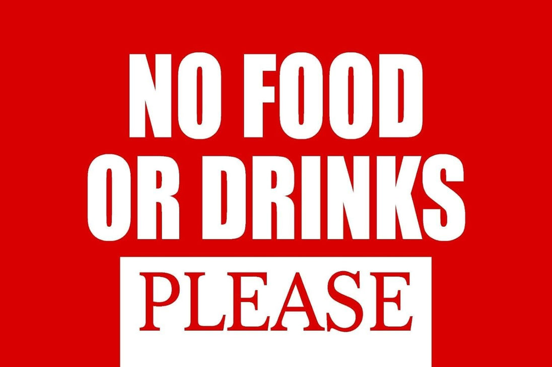 No Food Or Drinks Please Business Retail Counter Informational Sign | 12"w x 8"h