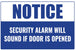 Notice Security Alarm Will Sound If Door Is Opened Counter Sign | 12"w x 8"h