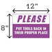 Please Put Tools Back In Their Proper Place Retail Counter Sign | 12"w x 8"h