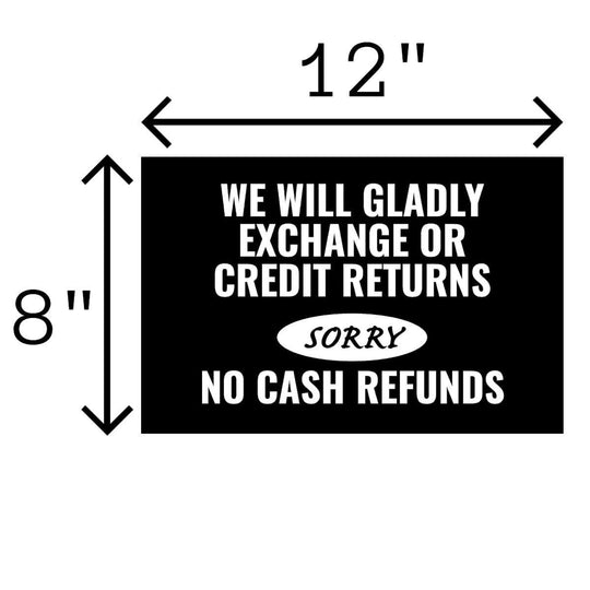 We Will Gladly Exchange Or Credit Returns Sorry Retail Counter Sign | 12"w x 8"h