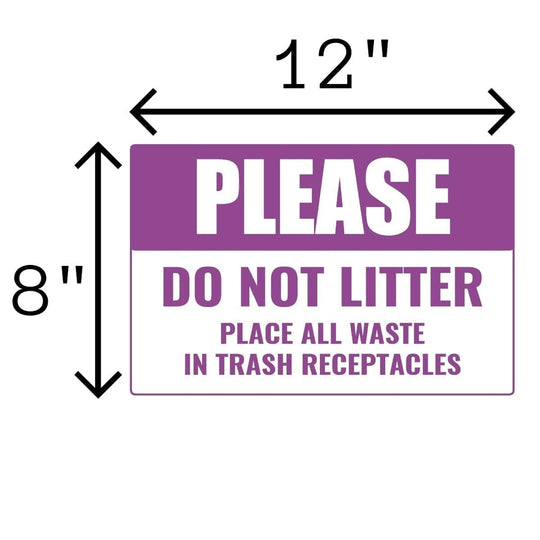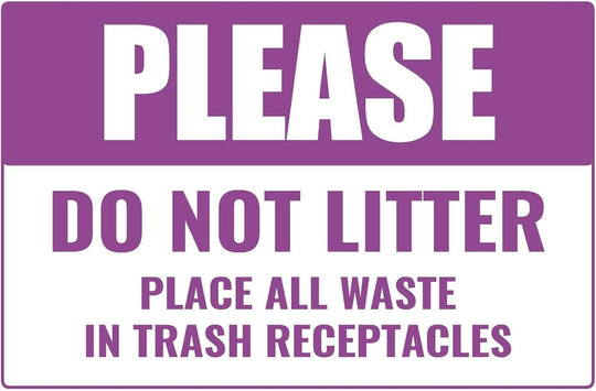 Please Do Not Litter Place All Waste In Trash Retail Counter Sign | 12"w x 8"h