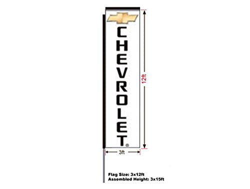Chevrolet Automotive Swooper Boomer Rectangular Flag, Kit with 15' Pole and Ground Spike, 3'w x 12'h Flag, Full Color