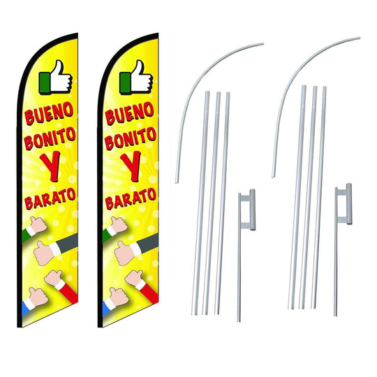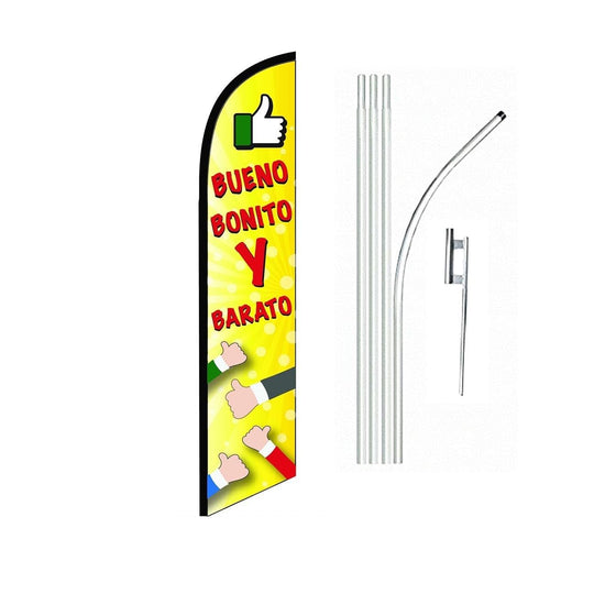 Bueno Bonito Y Barato Yellow Swooper Flutter Feather Flag | 3ft W x 11.5ft Tall