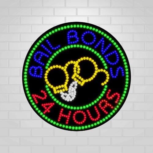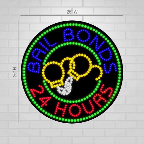 LED Bail Bonds 24 Hours Sign for Displays | Light Up Sign | 26"H x 26"W