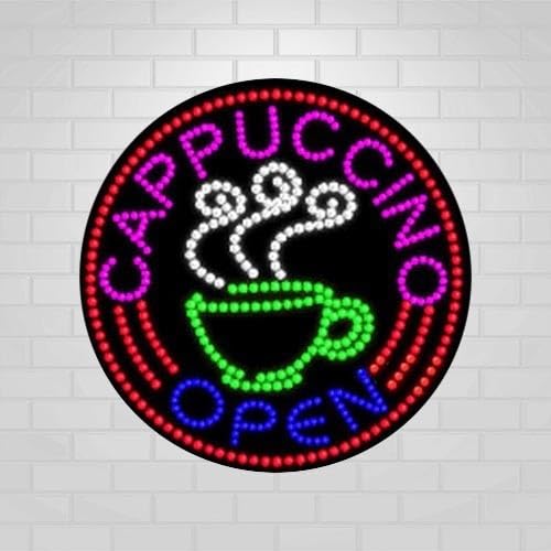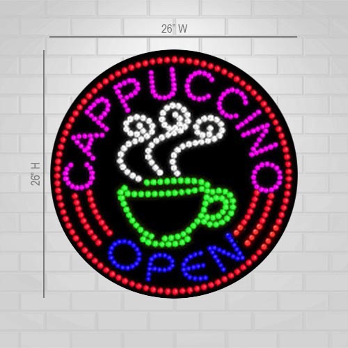 LED Open Cappuccino Sign for Retail Displays | Light Up Sign | 26"H x 26"W
