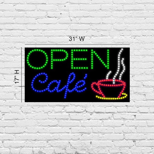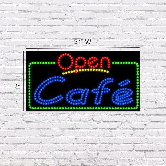 LED Open Café | Light-up Sign | 31"W x 17"H x 2"D