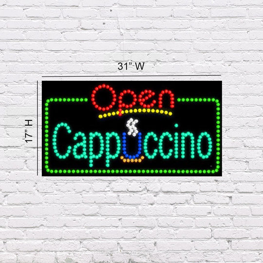 LED Open Cappuccino | Light-up Sign | 31"W x 17"H x 2"D
