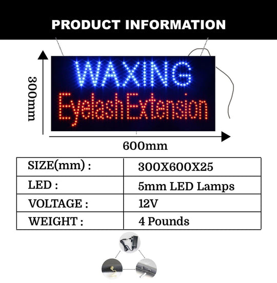 LED Waxing Eyelash Ext. Sign for Business | Light Up Sign | 12"H x 24"W x 2"D