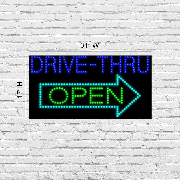 LED Drive - Thru Open | Light-up Sign | 31"W x 17"H x 2"D
