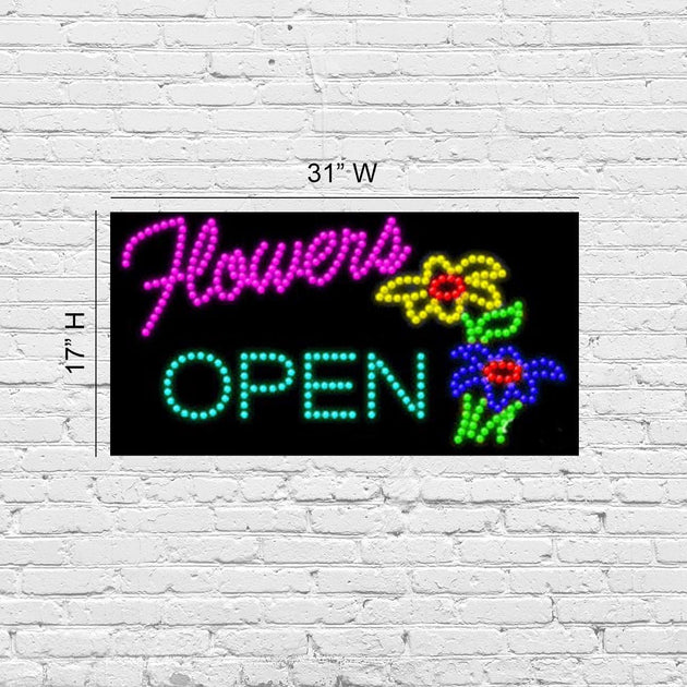 LED Flowers Open | Light-up Sign | 31"W x 17"H x 2"D