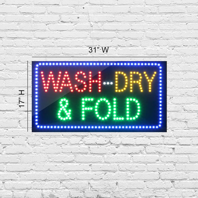 LED Wash-Dry & Fold Sign | Light Up Sign | 31"W x 17"H x 1"D