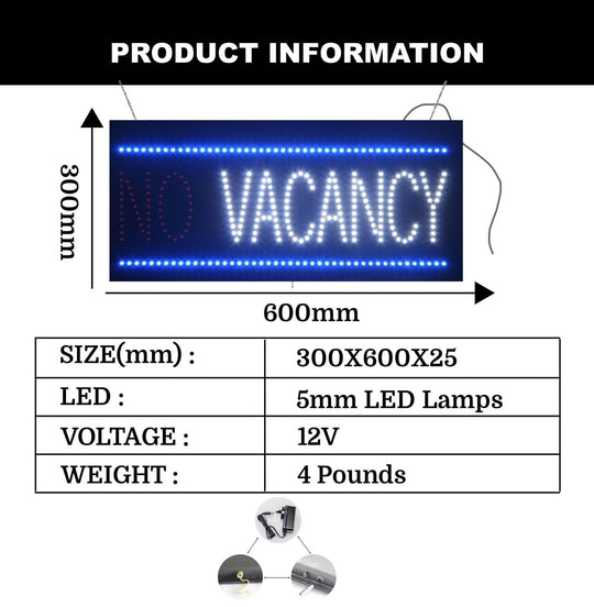 LED Vacancy/No Vacancy Sign for Business | Light Up Sign | 12"H x 24"W x 2"D