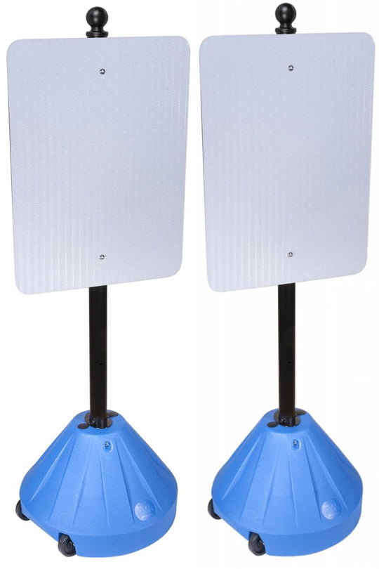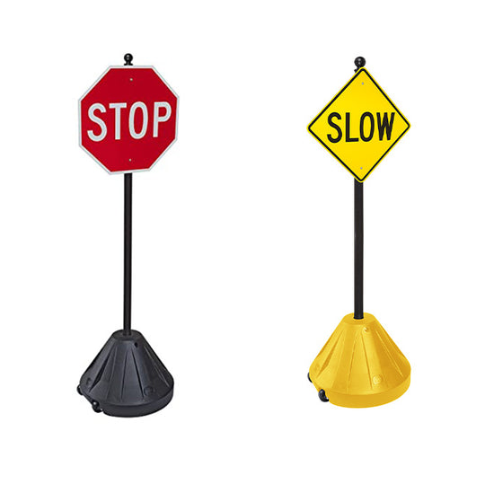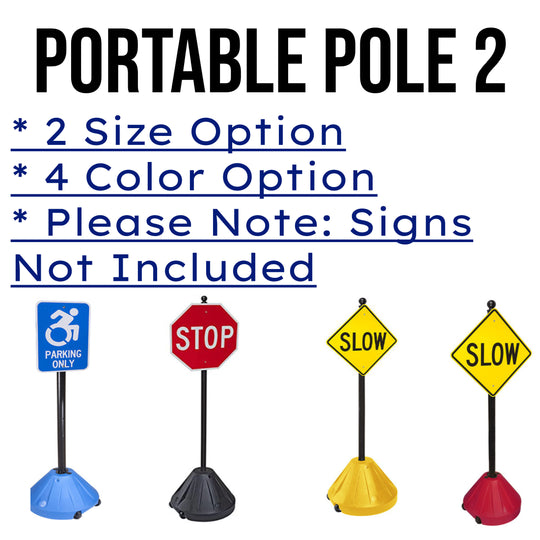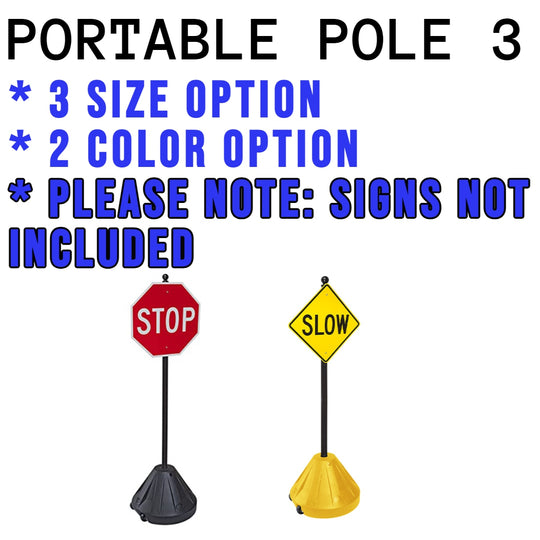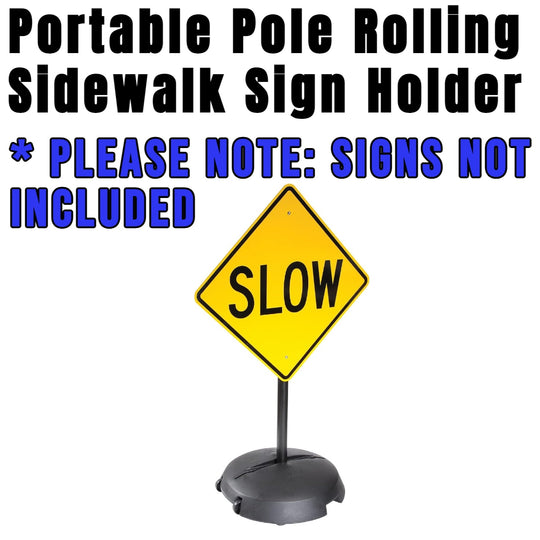 p>Large format 48" tall Next Generation Rolling Sign Base/Post; Black. Universal sign holder (24" dia. x 16" tall) with large, heavy duty, recessed 3" wheels for traffic, parking,safety signs and more; 1 or 2 sided display....Regular price From $169.50 -
