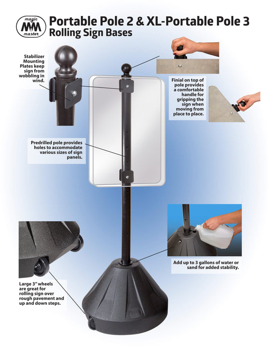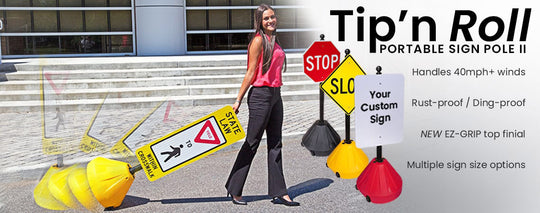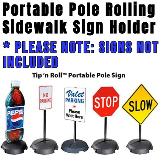 Tip-n-Roll® Portable Pole Rolling Sidewalk Sign Holder | 24" Base and 48” Pole