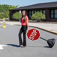 Original Rolling Sign Base/Post; Black. Universal sign holder (24" dia. x 6" tall) with recessed 2.5" wheels for traffic, parking, safety signs and more; 1 or 2 sided display. Includes 2" pre-drilled pole that stands 48"...Regular price $109.50 -