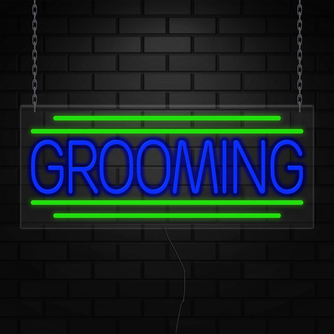 - Sign is mounted on acrylic clear backing and comes with power adapter, remote controller with on/off switch & dimmer, stand offs and hanging kits