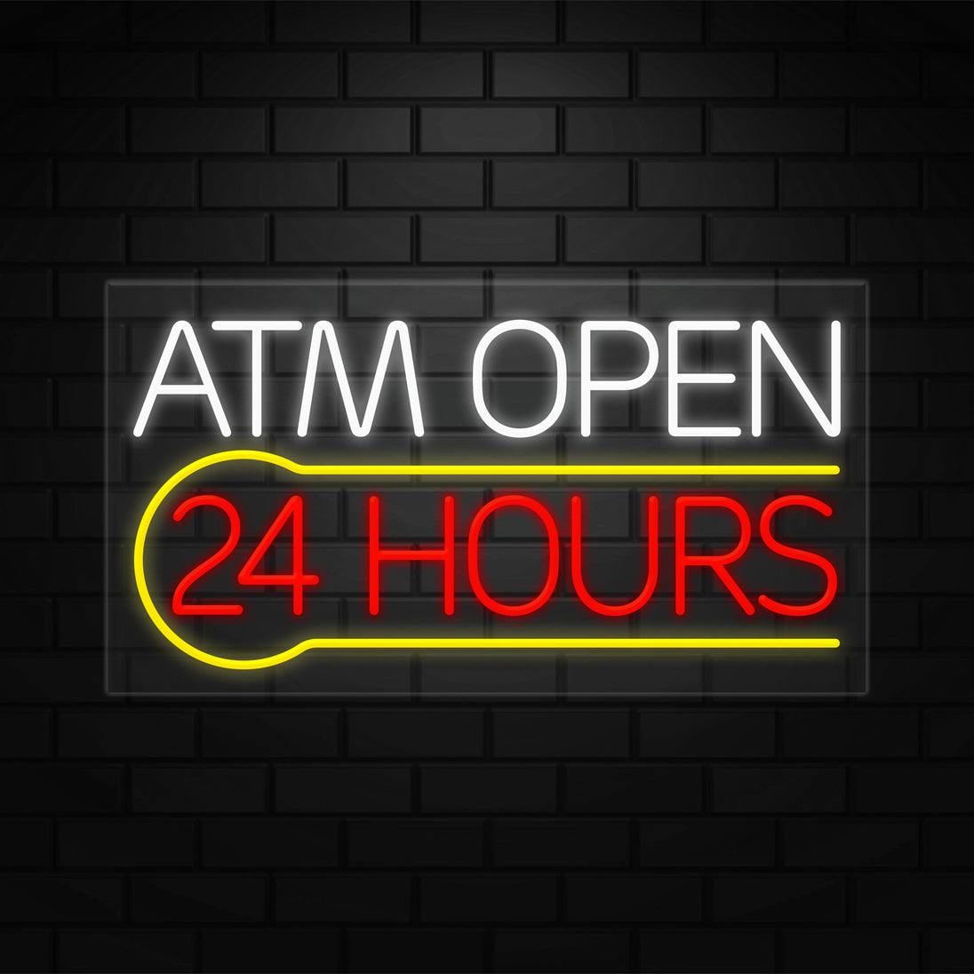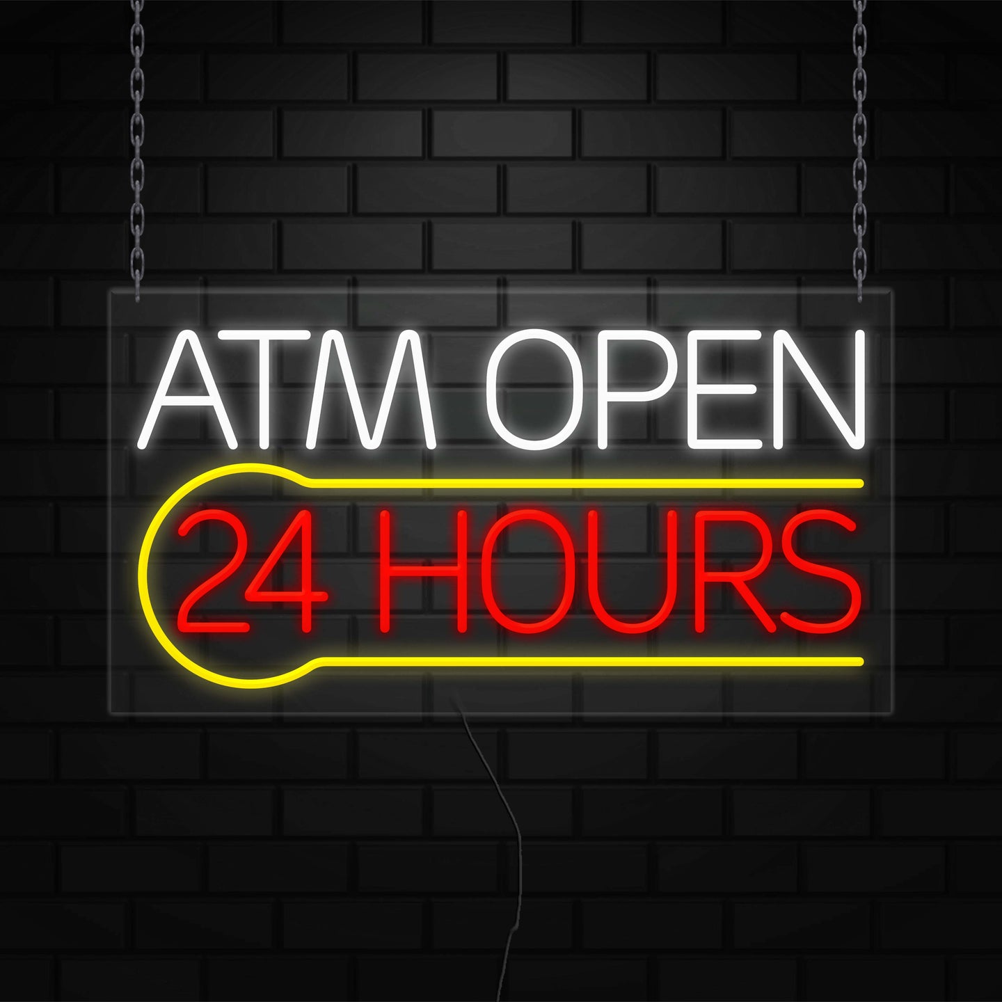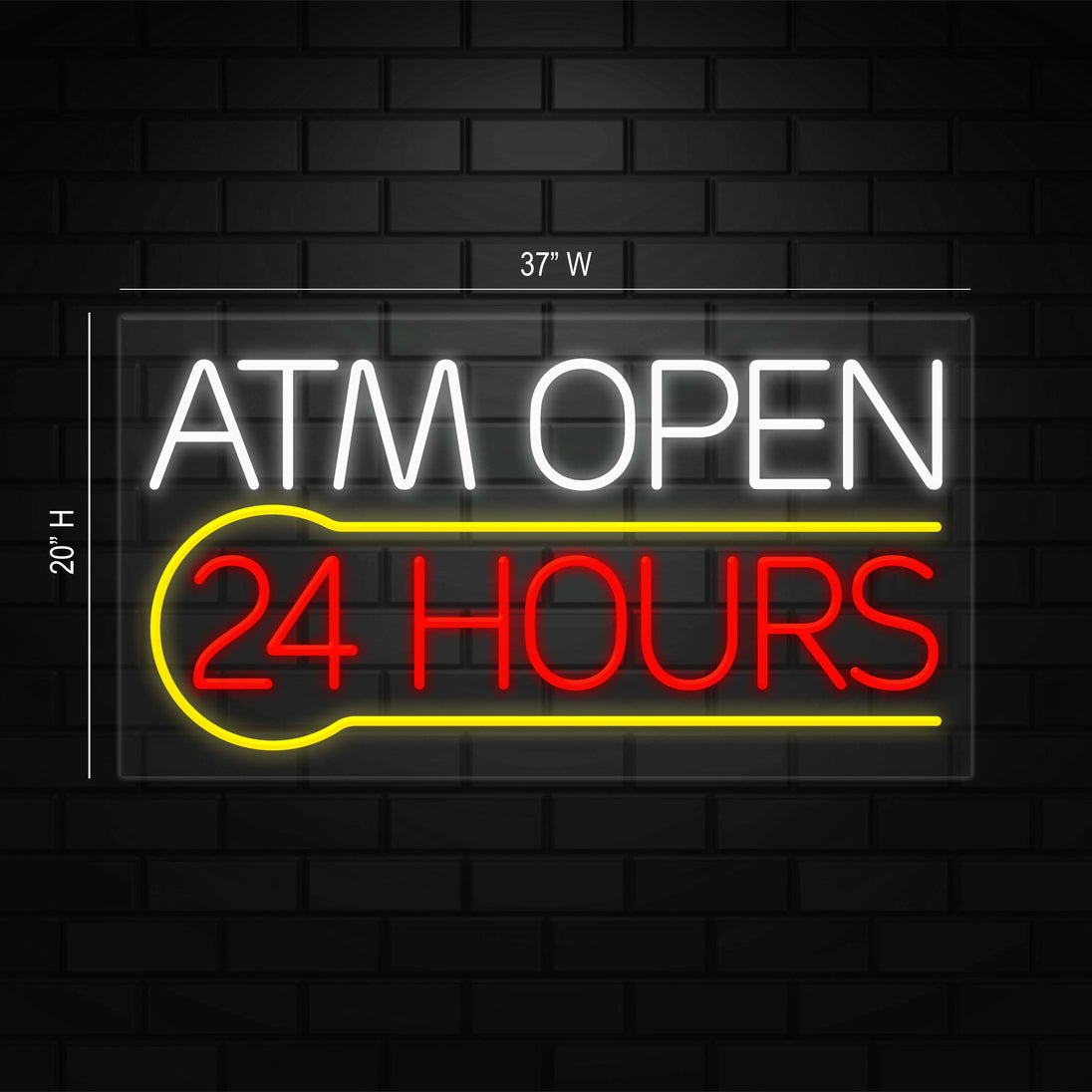 ATM Open 24 Hours Sign for Retail Displays | LED Flex Neon | 37"W x 20"H x 1"D