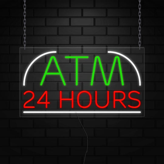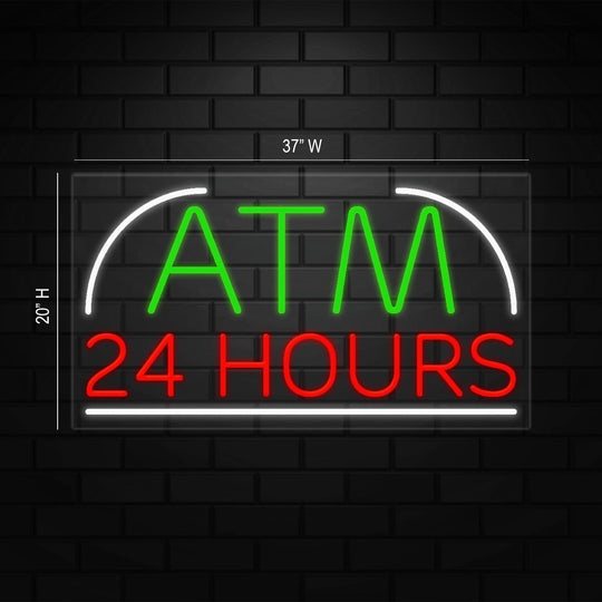ATM 24 Hours Sign for Business Displays | LED Flex Neon | 37"W x 20"H x 1"D