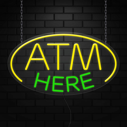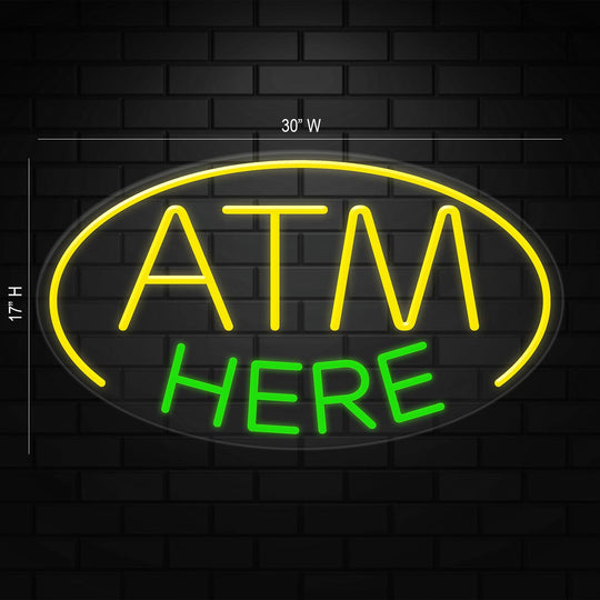 ATM Here Sign for Business Displays | LED Flex Neon | 30"W x 17"H x 1"D