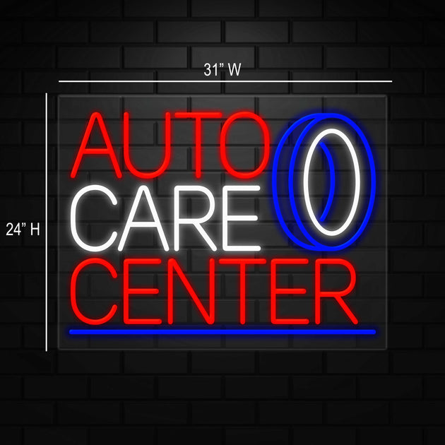 Auto Care Center Neon Sign for Retail Displays |LED Flex Neon| 31"W x 24"H x 1"D