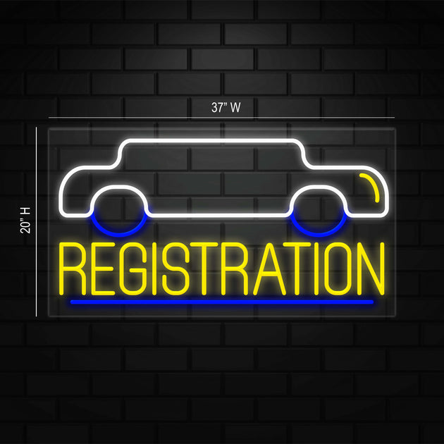 Auto Registration Sign for Business Display | LED Flex Neon | 37"W x 20"H x 1"D