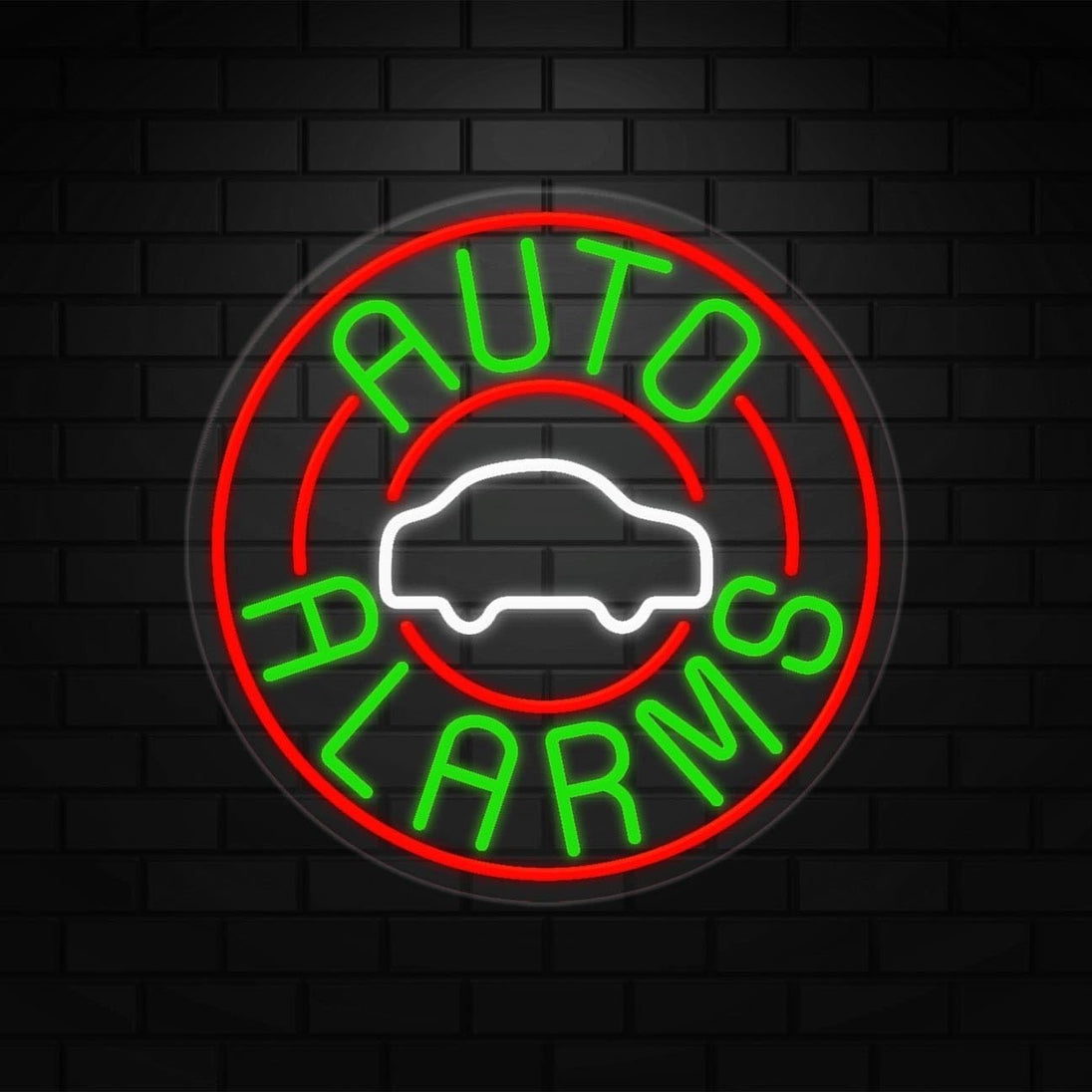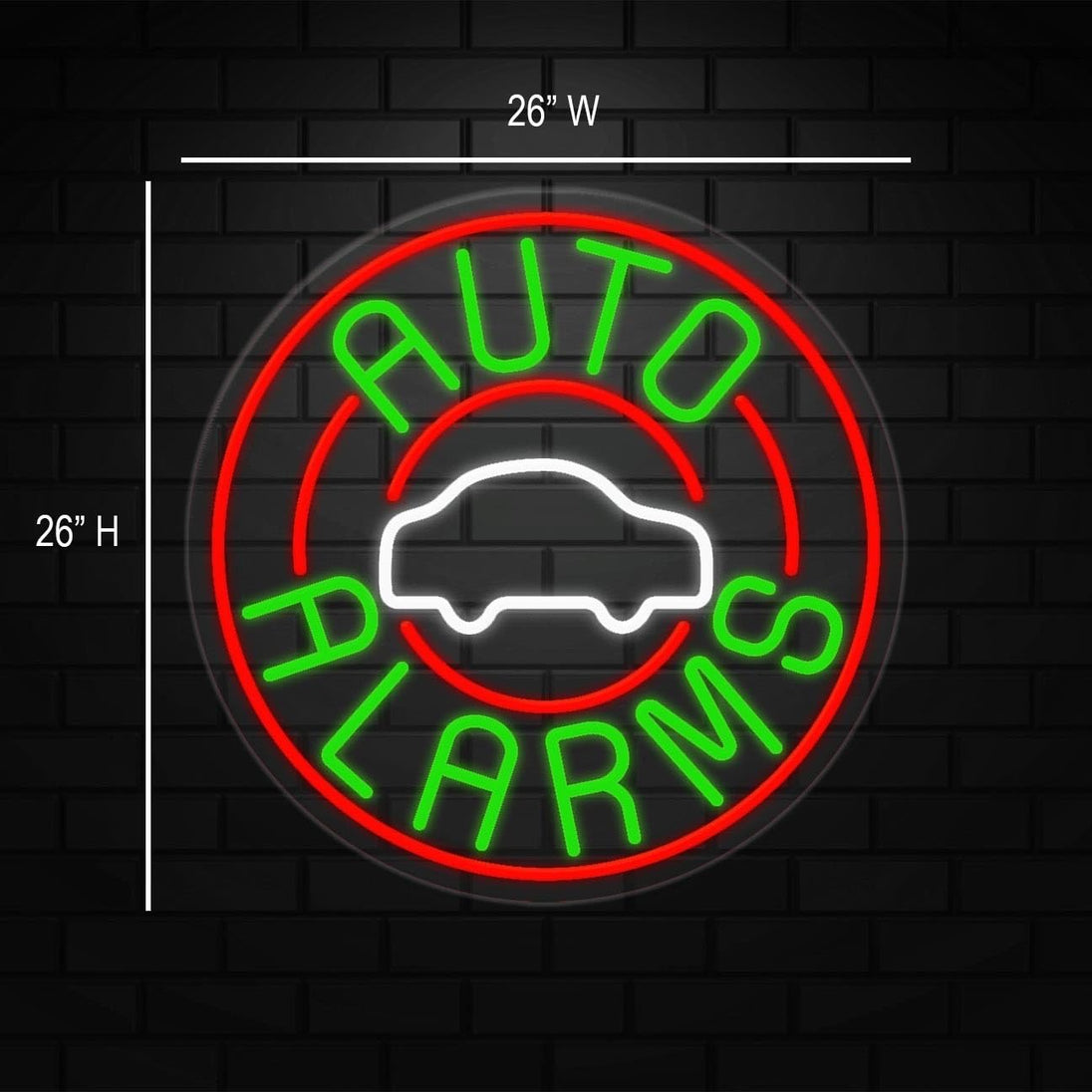 Auto Alarms Neon Sign for Retail Displays | LED Flex Neon | 26"W x 26"H x 1"D