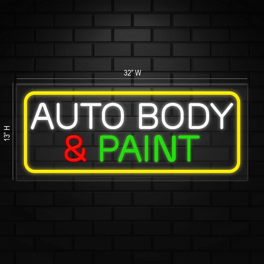 Auto Body & Paint Sign for Retail Displays | LED Flex Neon | 32"W x 13"H x 1"D