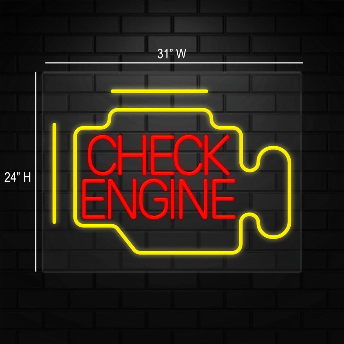 Check Engine Neon Sign for Retail Displays | LED Flex Neon | 31"W x 24"H x 1"D