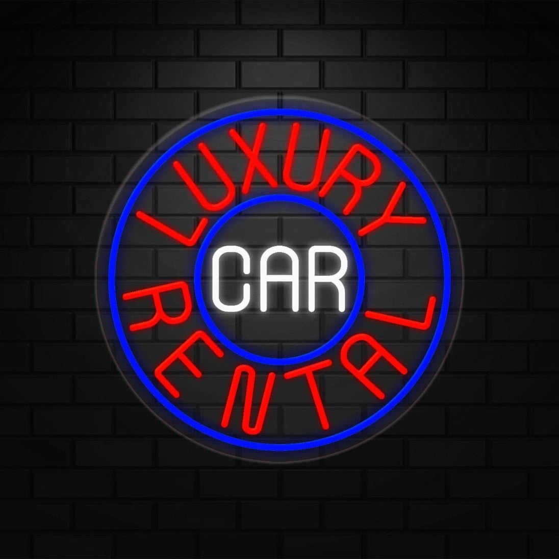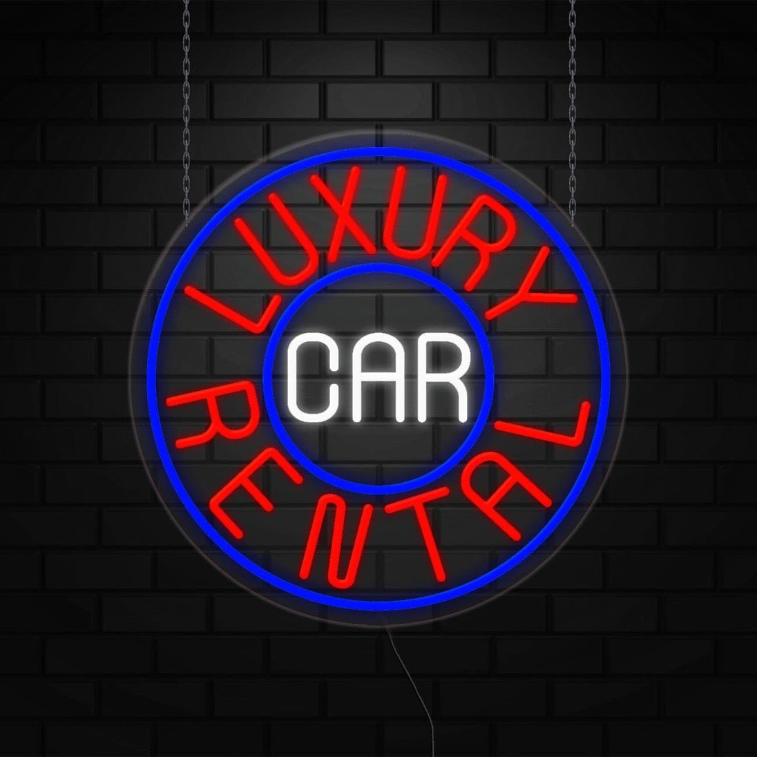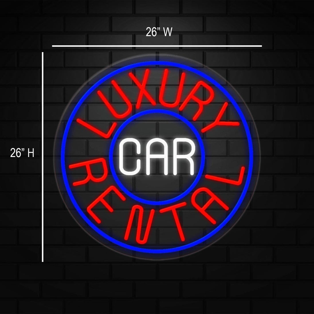 Luxury Car Rental Sign for Retail Displays | LED Flex Neon | 26"W x 26"H x 1"D