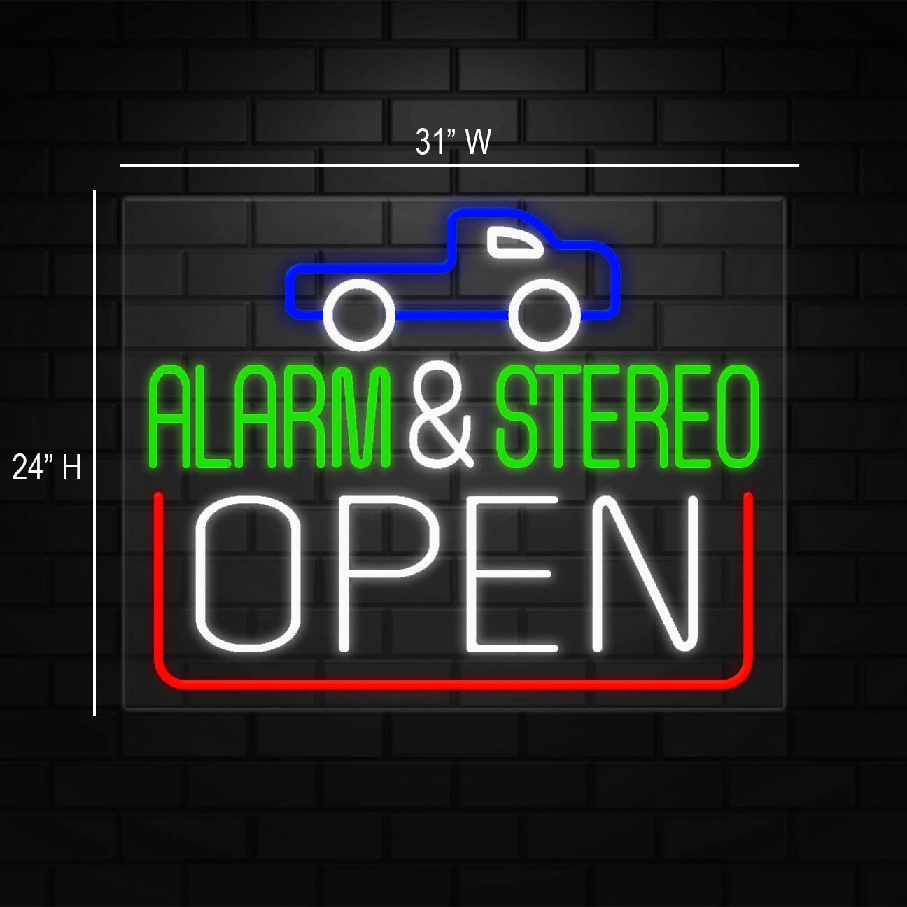 Alarm & Sterio Neon Sign for Retail Displays | LED Flex Neon | 31"W x 24"H x 1"D
