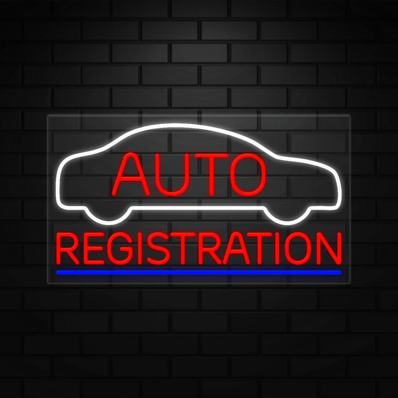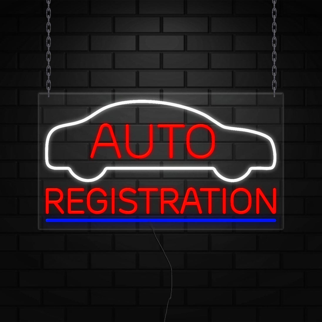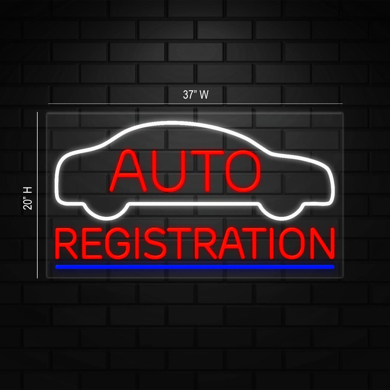 Auto Registration Sign for Business Display | LED Flex Neon | 37"W x 20"H x 1"D