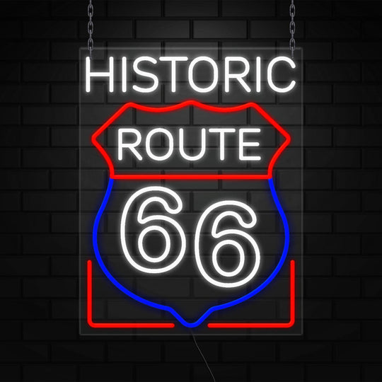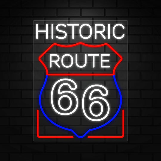 Historic Route 66 Sign for Business Display | LED Flex Neon | 24"W x 31"H x 1"D