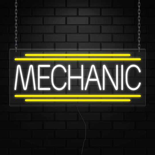 Mechanic Neon Sign for Retail Displays | LED Flex Neon | 30"W x 12"H x 1"D