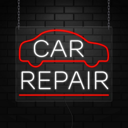 LED Flex Car Repair Neon Sign for Windows | 24"W x 31"H x 1"D