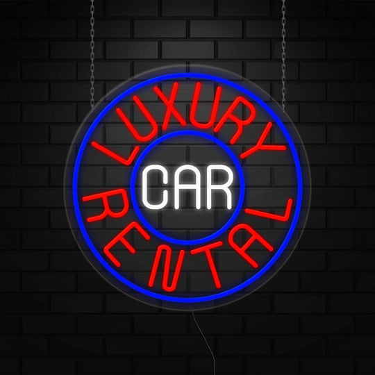 Luxury Car Rental Sign for Retail Displays | LED Flex Neon | 26"W x 26"H x 1"D